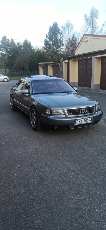 Na samochodzie oprócz tylnych błotników i zderzaków oryginalny lakier, elementy proste nie poobijane, posiada jakieś małe ryski ale wygląda naprawdę dobrze. Wnętrze czyste poszanowane, skóry nie popękane nie wytarte, sufit nie wisi. A8 stoi na 19' felgach Space Wheels z nowymi oponami całorocznymi. Sprężyny MTS technik -30 mm.